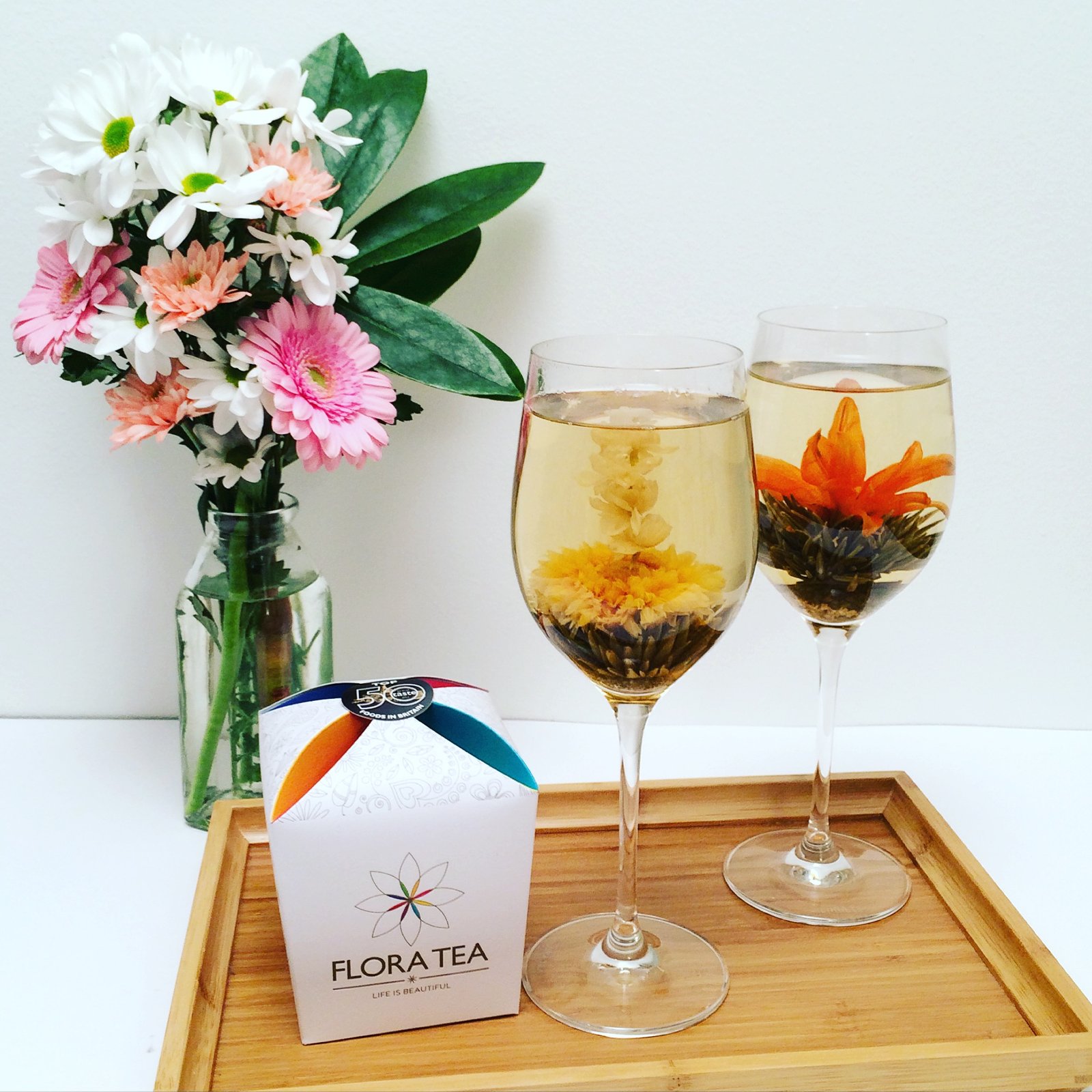 Each premium flora Tea (flowering tea™) comes individually packaged. Each individual flora Tea (flowering tea™) is a single tea heart/ball that can be brewed in a glass or teapot. Water can be topped up to make more that one cup from each tea heart.